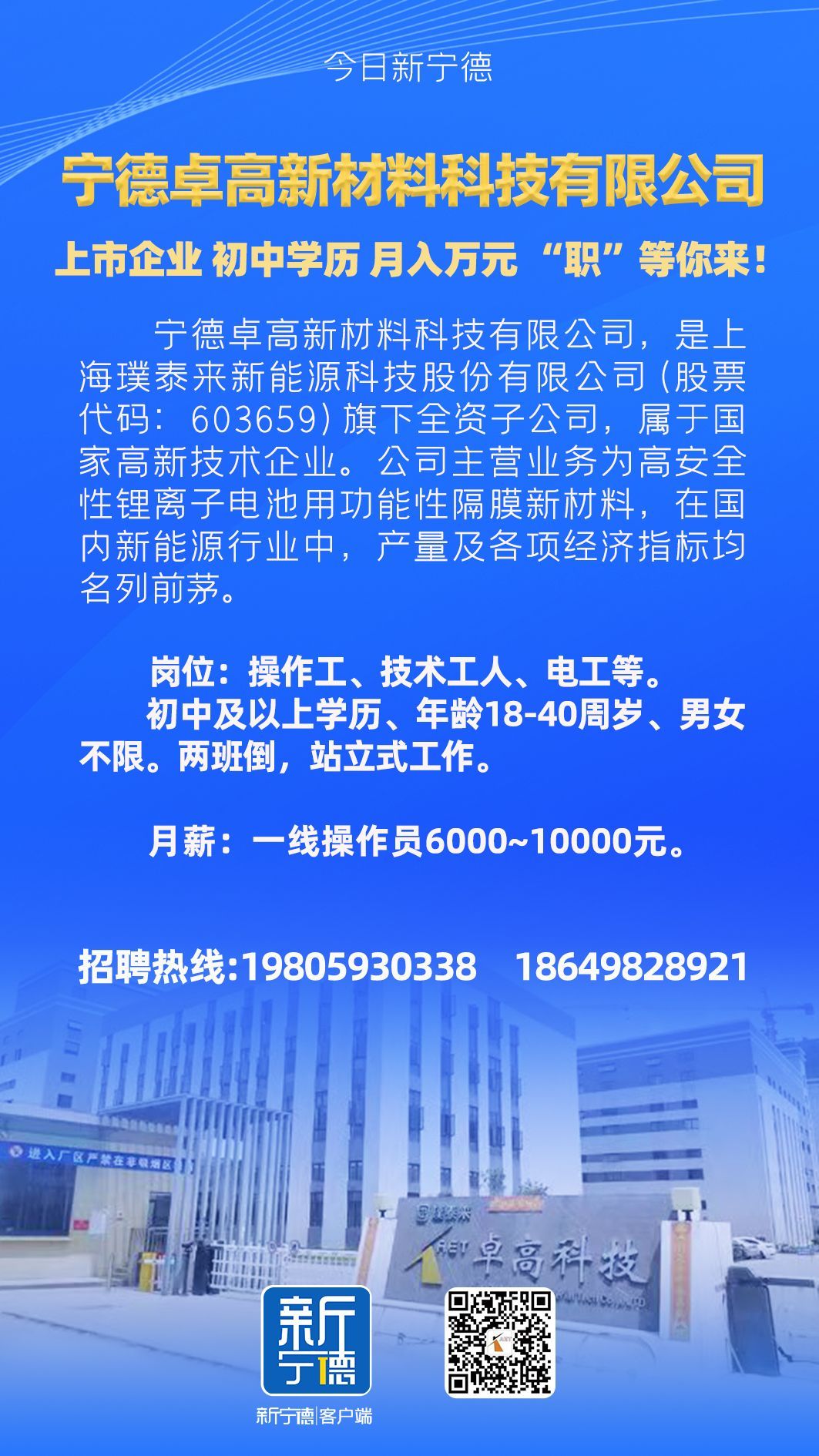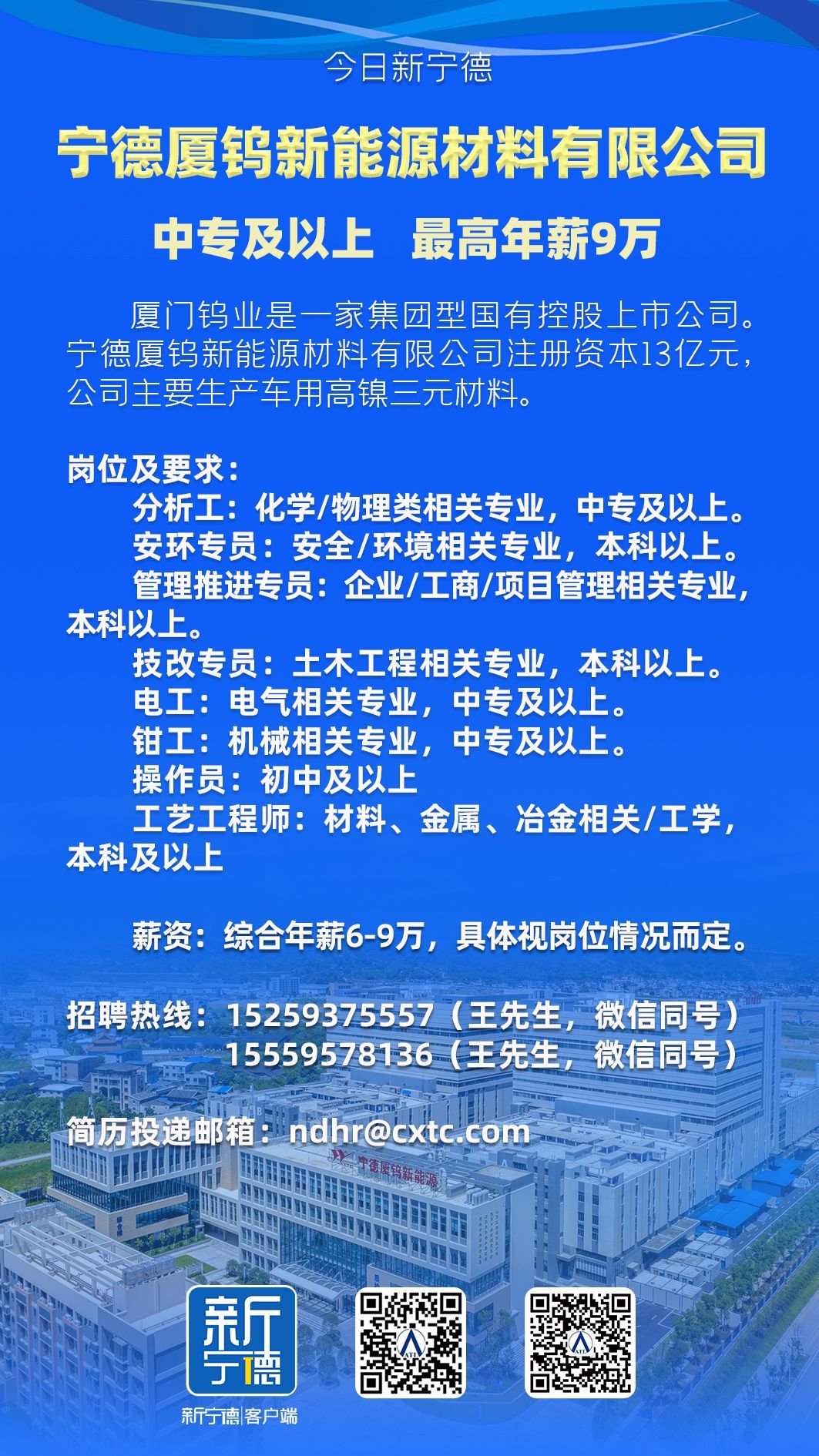 2月11日,市人社局用工服務(wù)專班攜寧德時代新能源科技股份有限公司、寧德新能源科技有限公司、上汽集團(tuán)乘用車福建分公司、青拓集團(tuán)、寧德卓高新材料科技有限公司等五家寧德市重點企業(yè)剛從山西長治市...