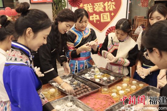 圖為少數(shù)民族學(xué)生包月餅共度中秋佳節(jié)。 中新網(wǎng)福建新聞9月29日電 (陳曉鳳 張的芳)28日,福建師范大學(xué)協(xié)和學(xué)院在中秋節(jié)前舉辦了一場(chǎng)“暖心+溫情”的聚會(huì),開(kāi)展“同心共筑中國(guó)夢(mèng),揚(yáng)帆起...