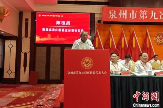 中新社泉州9月27日電 (吳冠標(biāo))“咱泉州是有名的僑鄉(xiāng),泉州人在海外打拼,不管掙多掙少,心里都裝著家鄉(xiāng)?!甭梅浦麅S領(lǐng)、菲律賓宋慶齡基金會(huì)創(chuàng)會(huì)會(huì)長(zhǎng)陳祖昌27日在福建省泉州市第九次歸僑...