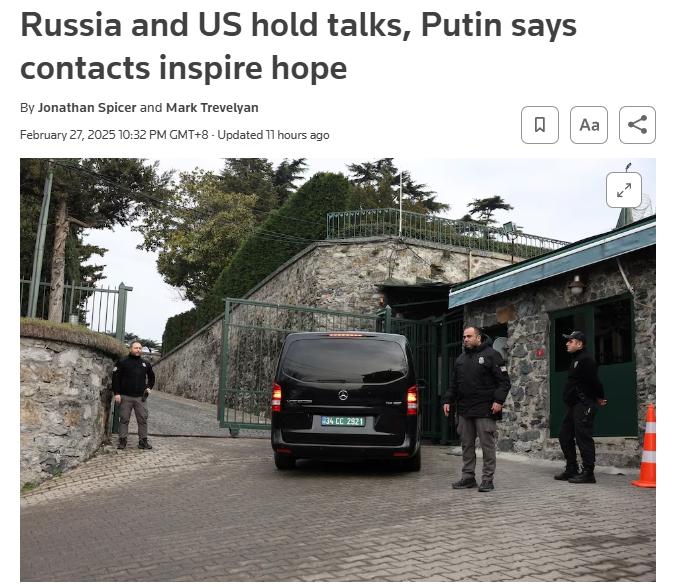 中新網(wǎng)2月28日電 綜合路透社和俄新社消息,當?shù)貢r間27日,俄羅斯和美國的代表團在土耳其伊斯坦布爾舉行了6個多小時的會談,會談內(nèi)容主要聚焦恢復各自大使館的正常運作。 圖片來源:路透社報道截圖 報道稱,這場...