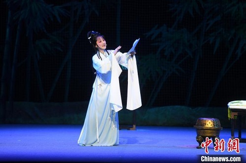 中新網(wǎng)福州10月25日電 (記者 劉可耕)“我一生與詩作了閨中伴,與筆墨結(jié)成骨肉親……。”24日晚,國家一級演員、越劇張派非遺傳承人鄭全傾情演繹越劇《紅樓夢·焚稿》經(jīng)典片段,唱腔婉轉(zhuǎn)回蕩。