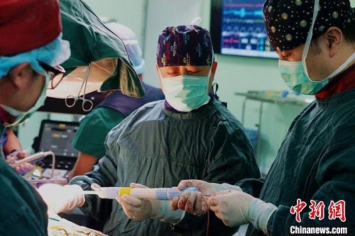2017年7月26日,沈振亞教授團(tuán)隊(duì)完成國產(chǎn)TAVI瓣膜J-Valve上市后全國首例臨床應(yīng)用。 江蘇省衛(wèi)健委供圖