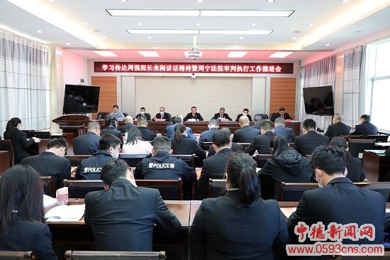 寧德新聞網(wǎng)11月17日電 (鄭樹泉)11月11日,周寧縣人民法院召開傳達(dá)學(xué)習(xí)貫徹最高人民法院周強(qiáng)院長來閩調(diào)研講話精神暨周寧法院審判執(zhí)行工作推進(jìn)會。會議由黨組副書記、副院長許偉主持,全體干警參加會議。