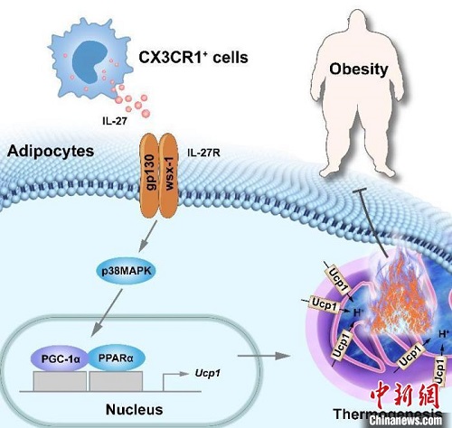 IL-27作用到脂肪細胞燃燒脂肪模式圖 暨南大學(xué)供圖