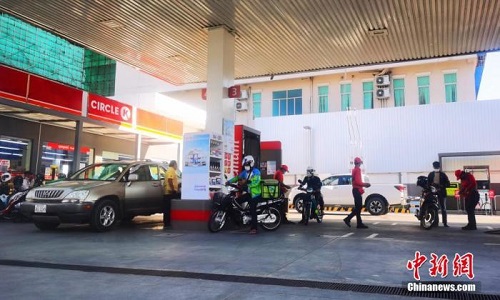 圖為柬埔寨金邊市加油站逐漸繁忙。中新社記者 歐陽開宇 攝