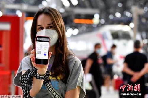資料圖:意大利米蘭,乘客在火車站出示健康證明。