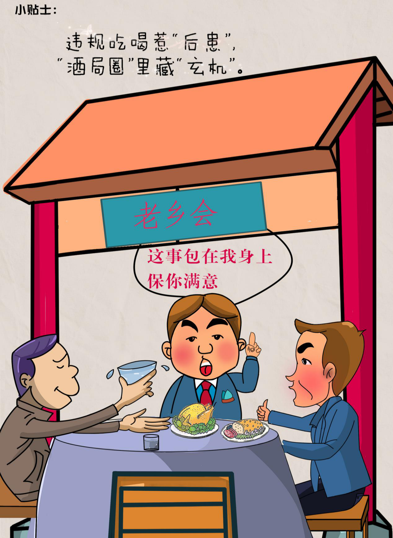 6.嚴(yán)禁違規(guī)參與各類“酒局圈”、違規(guī)參加老鄉(xiāng)會(huì)、校友會(huì)、戰(zhàn)友會(huì);出入私人會(huì)所、到隱蔽場(chǎng)所違規(guī)吃喝。