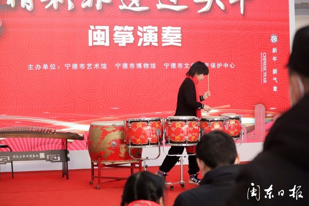 琴聲悠揚,鼓樂聲聲,2月5日上午,一場精彩的閩箏演奏正在寧德市藝術館一樓大廳上演。