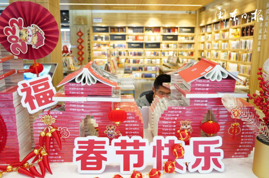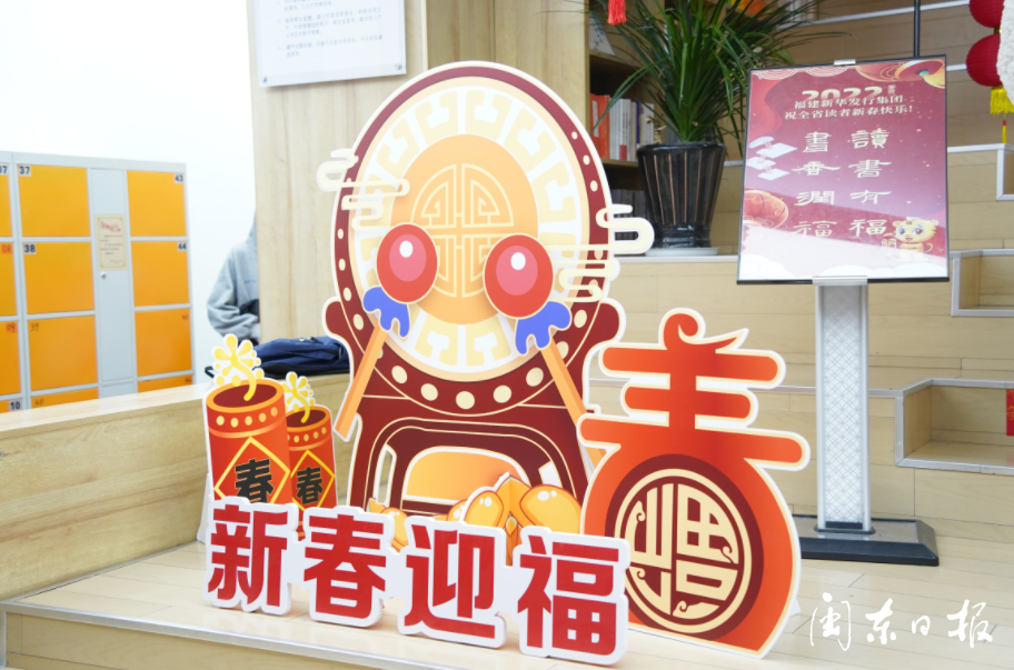 走進(jìn)寧德新華書店圖書城,所到之處滿是“福氣”?!案N幕敝黝}圖書花堆造型,“?;⑸奔埳葦[件,表達(dá)美好祝福的祈愿牌,可謂書香浸染迎新福氣升。