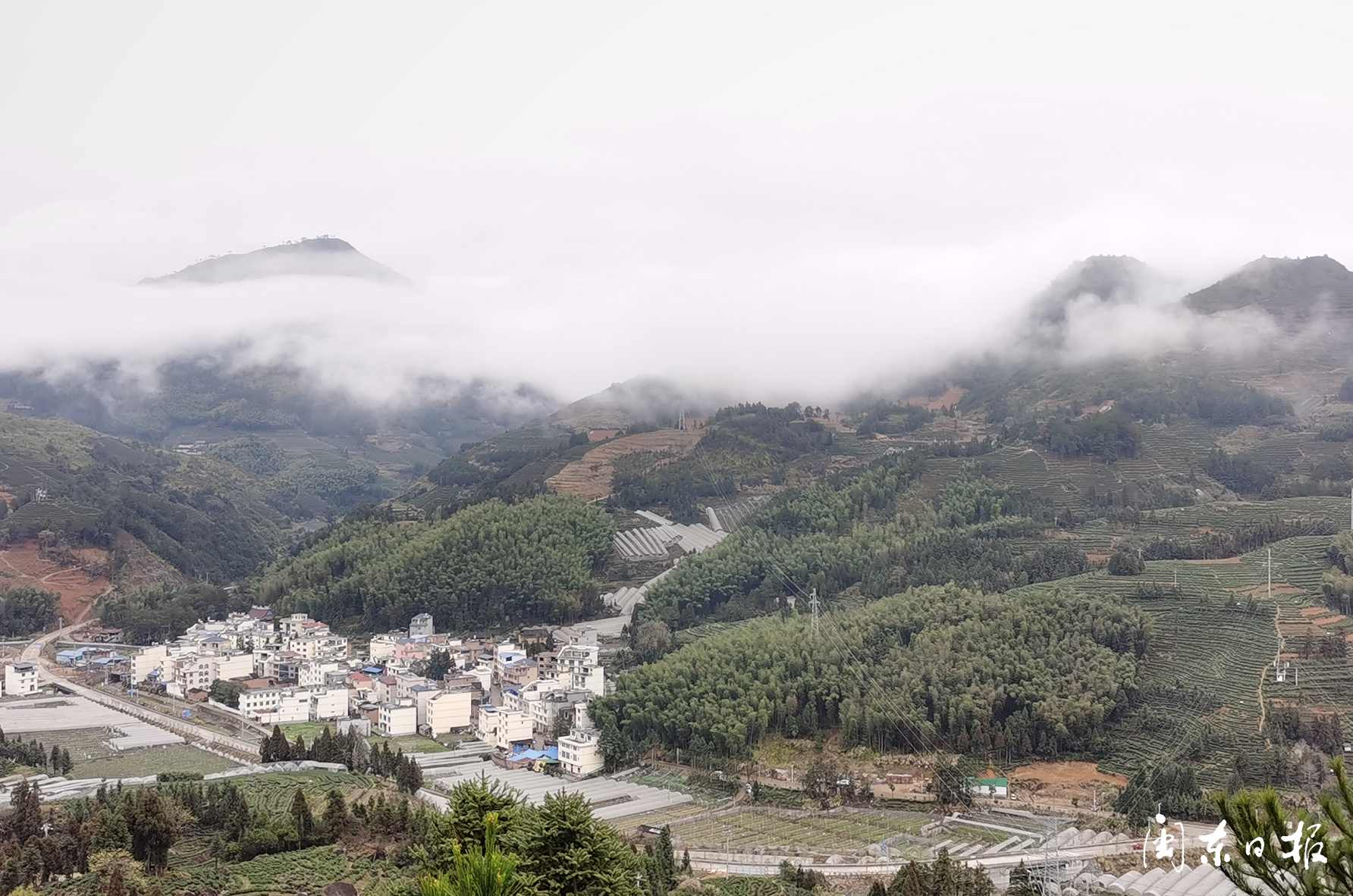 2月12日,雨后小清新。站在高處運眺,壽寧鳳陽新貌一覽無余。云霧繚繞,村莊、茶園、葡萄園、竹林、樹木等構(gòu)成了一幅幅山水新畫卷,苑如仙境,令人心曠神怡。