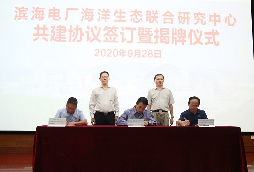 濱海電廠海洋生態(tài)聯(lián)合研究中心將致力于在濱海電廠冷源安全、海洋生態(tài)保護、海洋災害監(jiān)測預警等業(yè)務交叉領域形成技術合力,共同研究、解決、應對濱海電廠相關的海洋生態(tài)現(xiàn)實及潛在問題。聯(lián)合研究中心凝聚了各合作方的實驗基礎設施、儀器設備、技術能力、科研人才、專家學者等方面優(yōu)質資源和技術力量,將以濱海電廠海洋生態(tài)風險監(jiān)測預警為主要研究方向,努力實現(xiàn)濱海電廠海洋生態(tài)風險監(jiān)測預警相關技術體系、信息管理與共享體系、應急決策體系及應對能力體系等內容的探索研究和技術轉化應用。為此,聯(lián)合研究中心將逐步建立健全能力建設、經(jīng)費保障、學術交流、定期聯(lián)席會議和基金課題研究管理等制度和機制,加強與高水平科研院所、團隊的合作與交流,共同廣泛開展科普宣傳教育活動,努力提升聯(lián)合研究中心的整體科研水平和行業(yè)影響力,在實現(xiàn)生態(tài)效益、經(jīng)濟效益和社會效益等領域創(chuàng)造新業(yè)績、做出新貢獻。