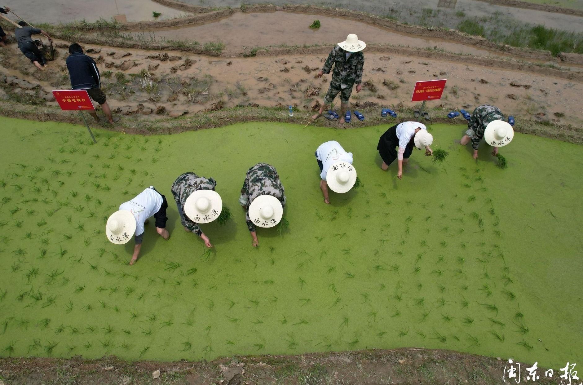 5月18日上午,由屏南縣委縣政府主辦的“糧食安全,我來種田——‘我在屏南有畝田’第一屆插秧節(jié)”啟幕。認(rèn)領(lǐng)田地的黨員干部代表、單位企業(yè)代表、當(dāng)?shù)厝罕姟⑿麓迕竦燃娂娋砥鹧澒?,下田插秧?/p>