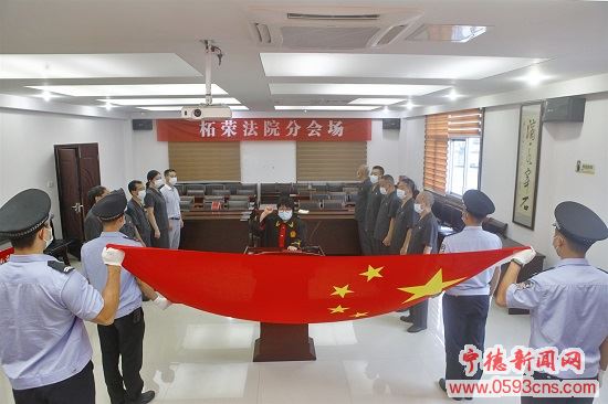 近日,柘榮縣法院舉行新任審判委員會委員憲法宣誓儀式,新任審判委員會委員袁曉汶面對鮮艷的五星紅旗,高舉右手,莊嚴(yán)宣誓。(文/圖 孔敏)