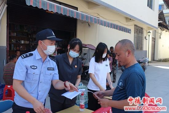 日前,寧德中院聯(lián)合壽寧法院、鳳陽鎮(zhèn)政府在壽寧縣鳳陽鎮(zhèn)鳳陽村開展普法宣傳活動。通過設點“擺攤”、走訪入戶等方式,干警們向群眾發(fā)放宣傳單頁,集中宣傳防范電信網(wǎng)絡詐騙、禁毒反邪、養(yǎng)老防詐等法律知識,提高平安“三率”。(文/圖 黃曉萍)