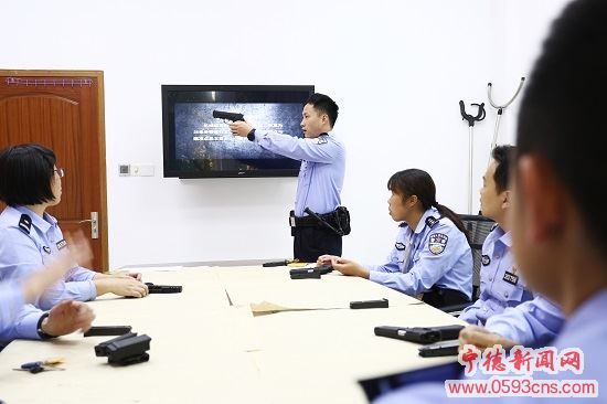 在室內(nèi),法警大隊政委陳素超傳達(dá)了《公安機(jī)關(guān)公務(wù)用槍管理“三必須”“五嚴(yán)禁”》的通知,增強(qiáng)全隊法警安全管理、規(guī)范使用槍支的意識;教練員蘭陽健結(jié)合92改式手槍技能視頻學(xué)習(xí)光盤進(jìn)行講解,從“92改式手槍”的性能、分解結(jié)合要領(lǐng)和使用注意事項三個方面進(jìn)行了細(xì)致講解,對容易出錯的地方進(jìn)行了重點說明。