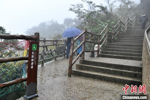 中新網(wǎng)宜章9月16日電 (記者 魯毅)“爬一座山,就像一次日常散步。”淅淅瀝瀝小雨中,意大利《新華時(shí)報(bào)》社長(zhǎng)朱玉華漫步于湖南莽山五指峰景區(qū)“云間”棧道上不禁感嘆,近兩小時(shí)的游覽,全程沒(méi)有陡坡也不用爬臺(tái)階,“沒(méi)想到登山還能這樣輕松”。