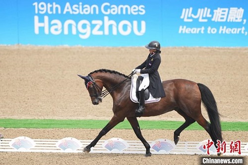 中新網(wǎng)杭州9月26日電(記者 郭其鈺)9月26日,杭州亞運會馬術(shù)比賽在桐廬馬術(shù)中心開賽,泰國公主希里婉瓦麗參加馬術(shù)盛裝舞步團體及個人項目。她在接受記者采訪時說,由于今天天氣非常熱,因此她在比賽過程中比較謹(jǐn)慎,沒有進(jìn)行一些高難度動作。