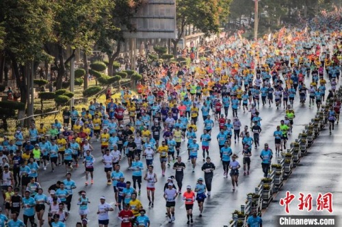 在賽道沿途,當(dāng)?shù)孛癖娪脽崆檠笠绲膮群昂蜌g呼聲為參賽選手加油助威,他們手中揮舞著五彩的旗幟,鼓舞著每位跑者。