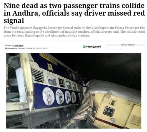 據(jù)報(bào)道,當(dāng)天,一列從安得拉邦的維薩卡帕特南開往奧迪沙邦的客運(yùn)列車,與同軌道上從維薩卡帕特南駛向帕拉薩的客運(yùn)列車相撞,事故造成數(shù)節(jié)車廂脫軌。