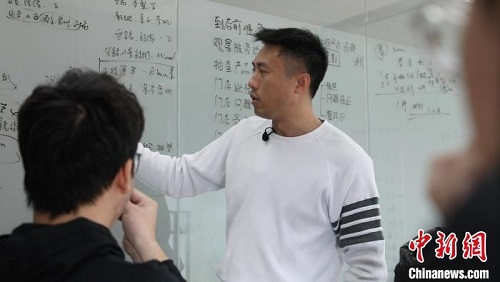 1月22日,黃國翔與公司員工開會。中新社記者 張亨偉 攝
