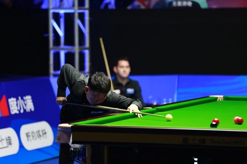第四局,張安達(dá)在29比1時進(jìn)攻出現(xiàn)失誤,湯姆·福德抓住機會打進(jìn)紅球上手直接轟出單桿93分,雙方戰(zhàn)平。休息歸來,張安達(dá)57比14再勝一局,大比分3比2再度領(lǐng)先。此后,福德打出單桿54分,連勝2局,大比分4比3反超。關(guān)鍵時刻,張安達(dá)打出1桿80+,并在第9局,再次送上精彩表現(xiàn)長臺打進(jìn)粉球加紅球翻袋,硬核完成破百,桿法贏得全場歡呼。第一時段的比賽也就此結(jié)束,張安達(dá)5比4領(lǐng)先湯姆·福德。