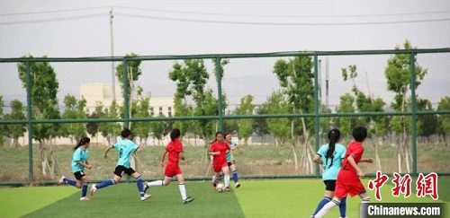2023年5月13日,新疆兵團(tuán)第十二師第十一屆校園足球校際聯(lián)賽總決賽在頭屯河農(nóng)場(chǎng)學(xué)校舉行。(資料圖)丁莉 攝